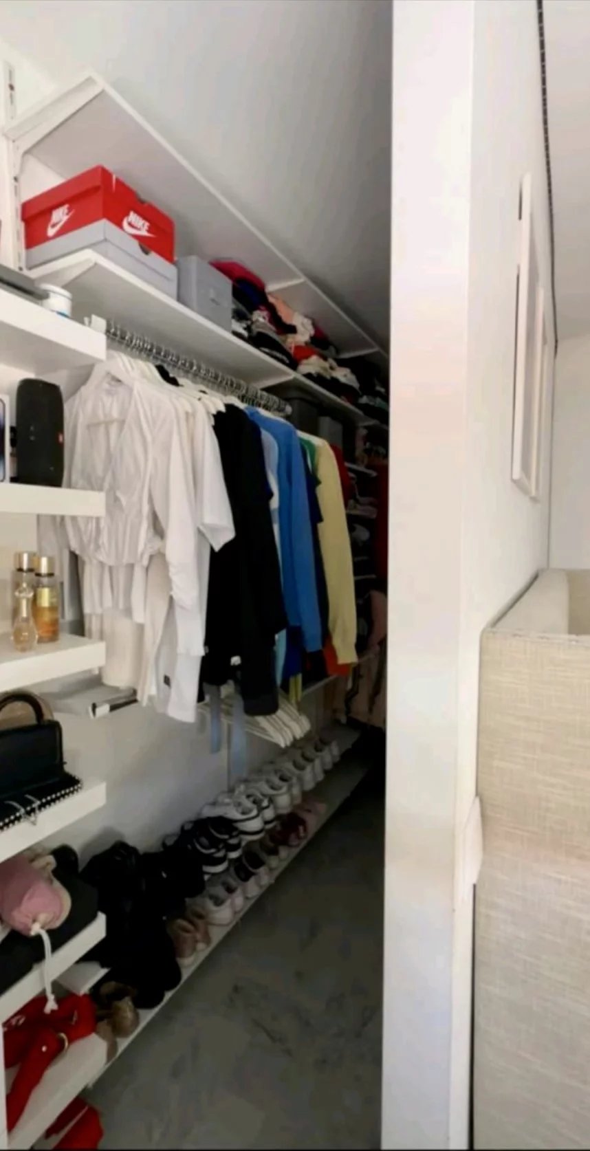 ein Zimmer, das über einen begehbaren Kleiderschrank verfügt.