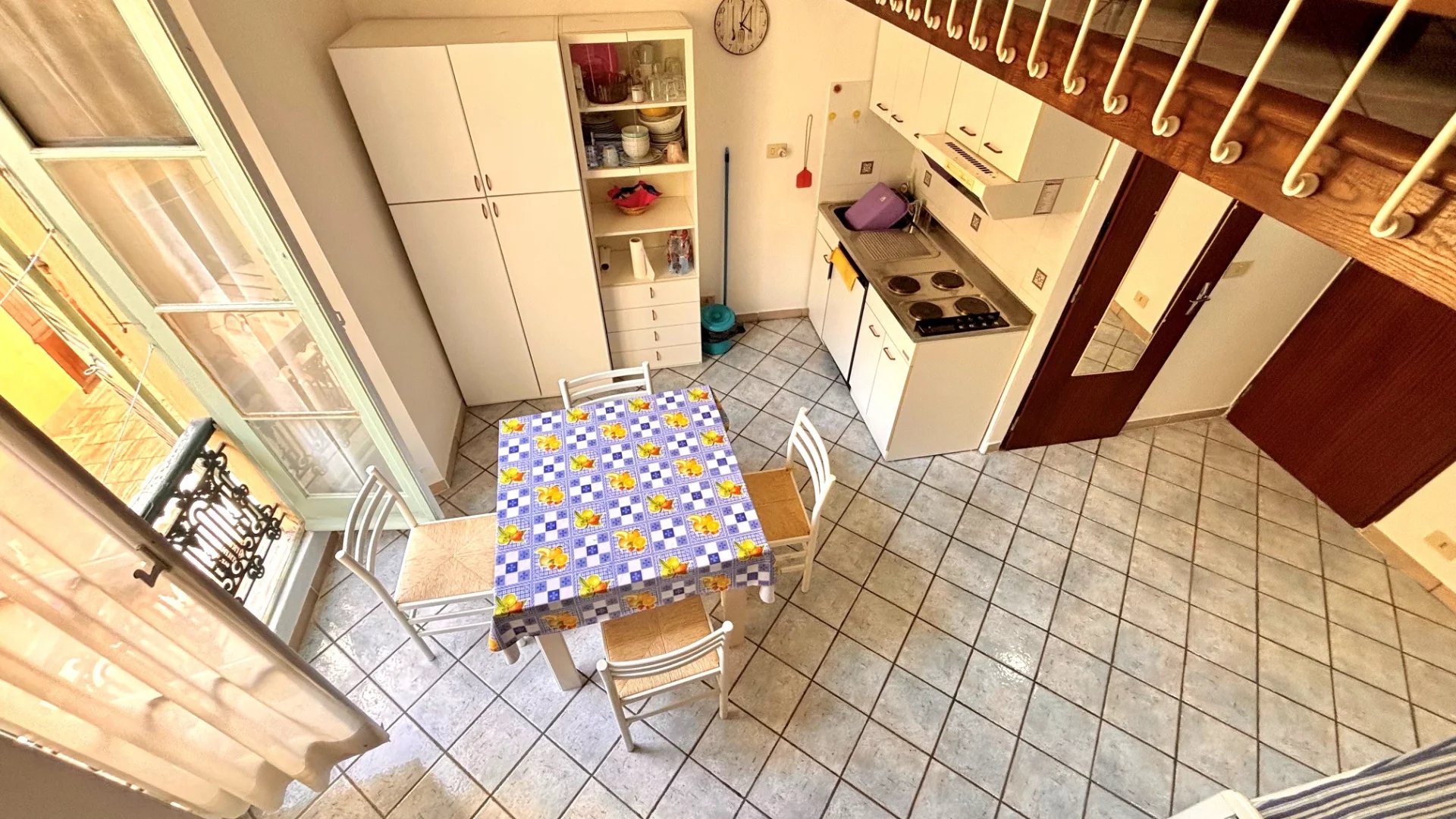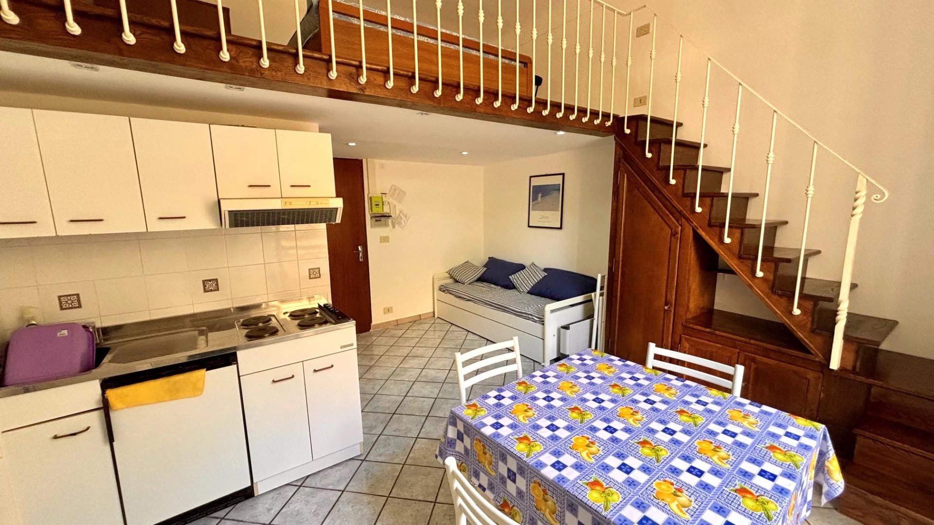 Composto da soggiorno con angolo cottura, bagno con WC, soppalco adibito a camera da letto.